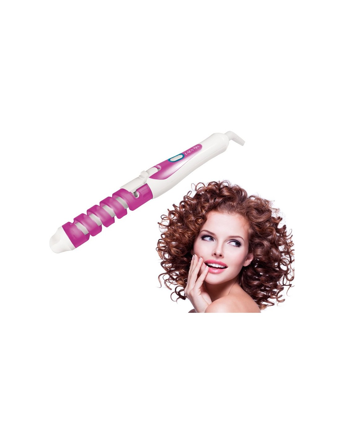 Lockenstab mit keramikplatte ø19 mm, erreicht die maximale temperatur von 180 ° c. ausgestattet mit knopf stoppt das haar und die praktische spirale, die eine definierte locke ermöglicht. praktisch und einfach zu handhaben dank des ergonomischen griffs. 360 ° drehbare schnur. betriebslicht.