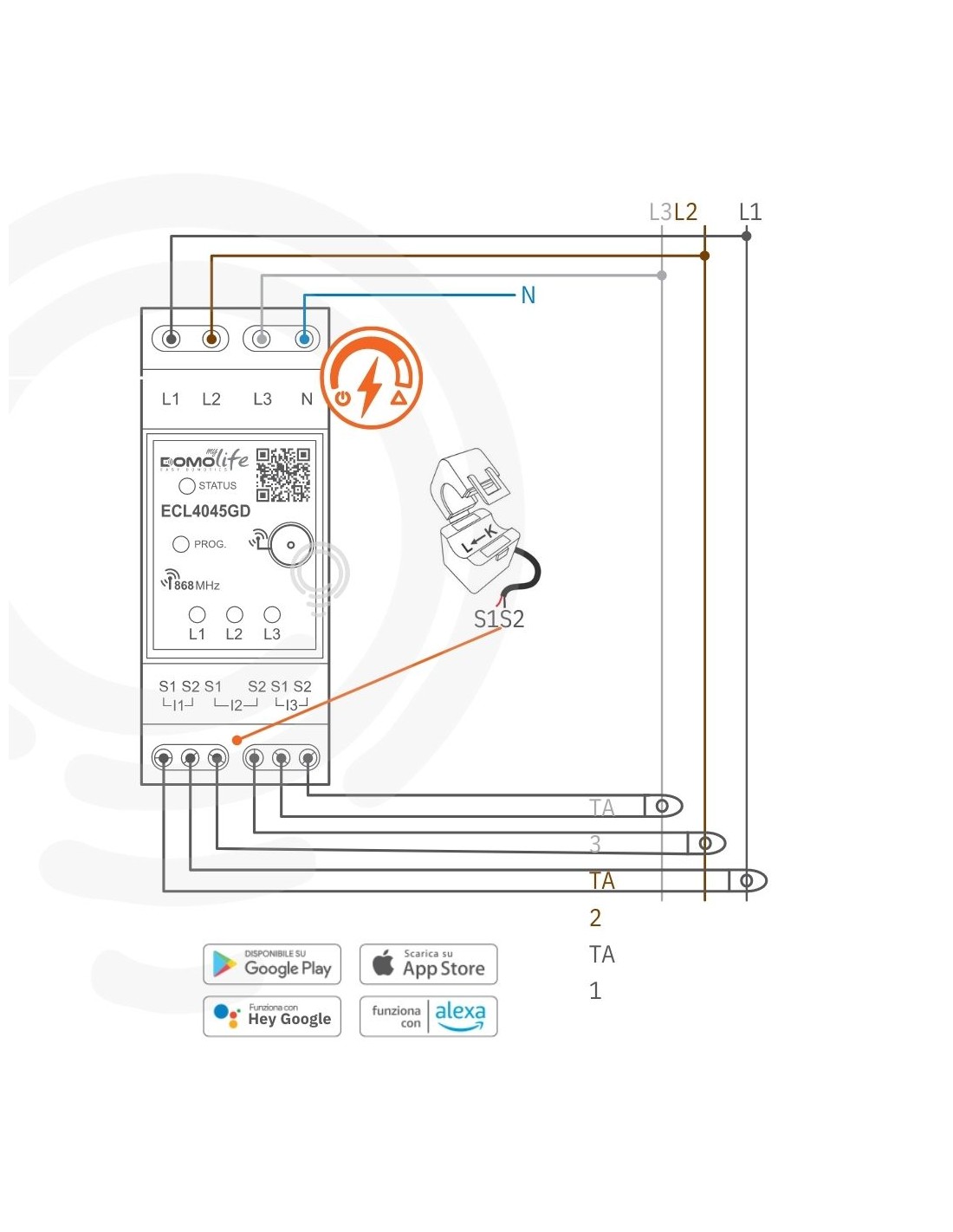 Der dreiphasige Energieverbrauchszähler für DIN-Schiene ist ein Gerät zur Messung der elektrischen Größen von bis zu 3-phasigen Leitungen. Dank der Kompatibilität mit iOS- und Android-Mobilgeräten ist es möglich, den Energieverbrauch in Echtzeit über die D myLife-App zu verwalten und zu überwachen.