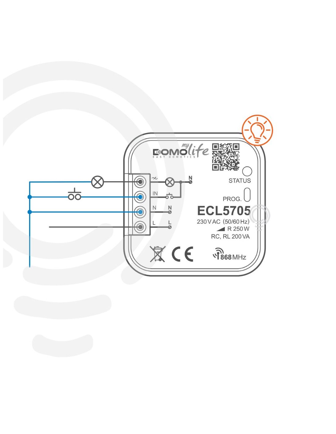 Der Aktor verfügt über eine verschlüsselte Funkübertragung und bietet eine große Reichweite von bis zu 250 m im offenen Gelände. Die Stromversorgung beträgt 230 V∞, wodurch das Produkt einfach in Verteilerdosen installiert werden kann.