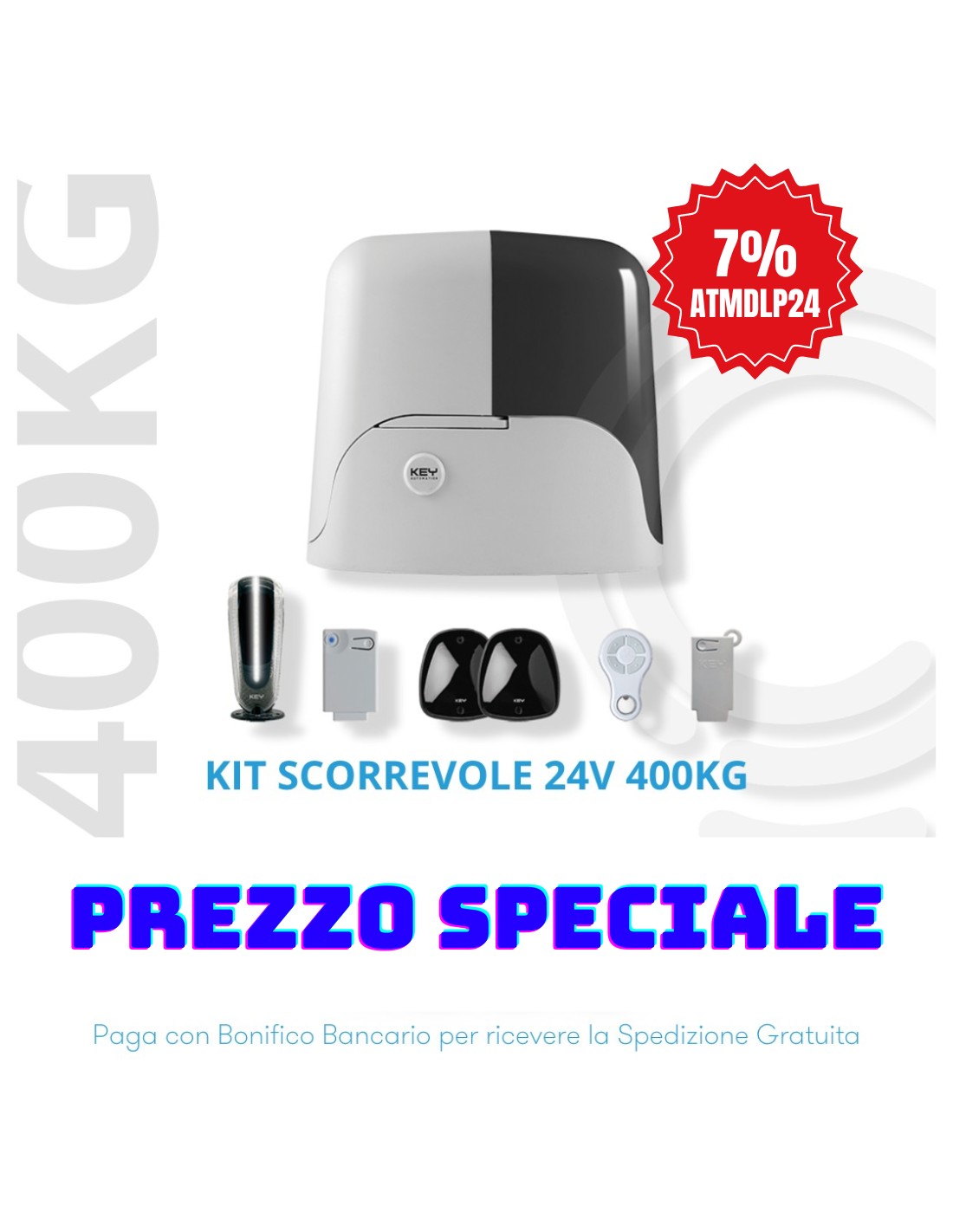 Kit moteur coulissant 800kg 230v clé domotique rolling code