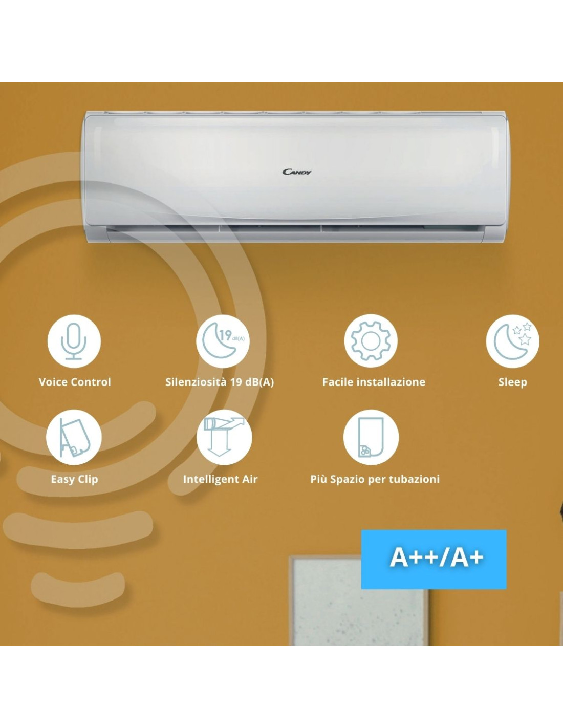 Il controllo Wi-Fi può essere fatto tramite l'app Candy Simply-Fi, che è disponibile gratuitamente su Google Play Store e Apple App Store. L'app consente di accendere e spegnere il climatizzatore, di regolare la temperatura, di impostare il timer e di controllare lo stato del filtro anti-polvere.