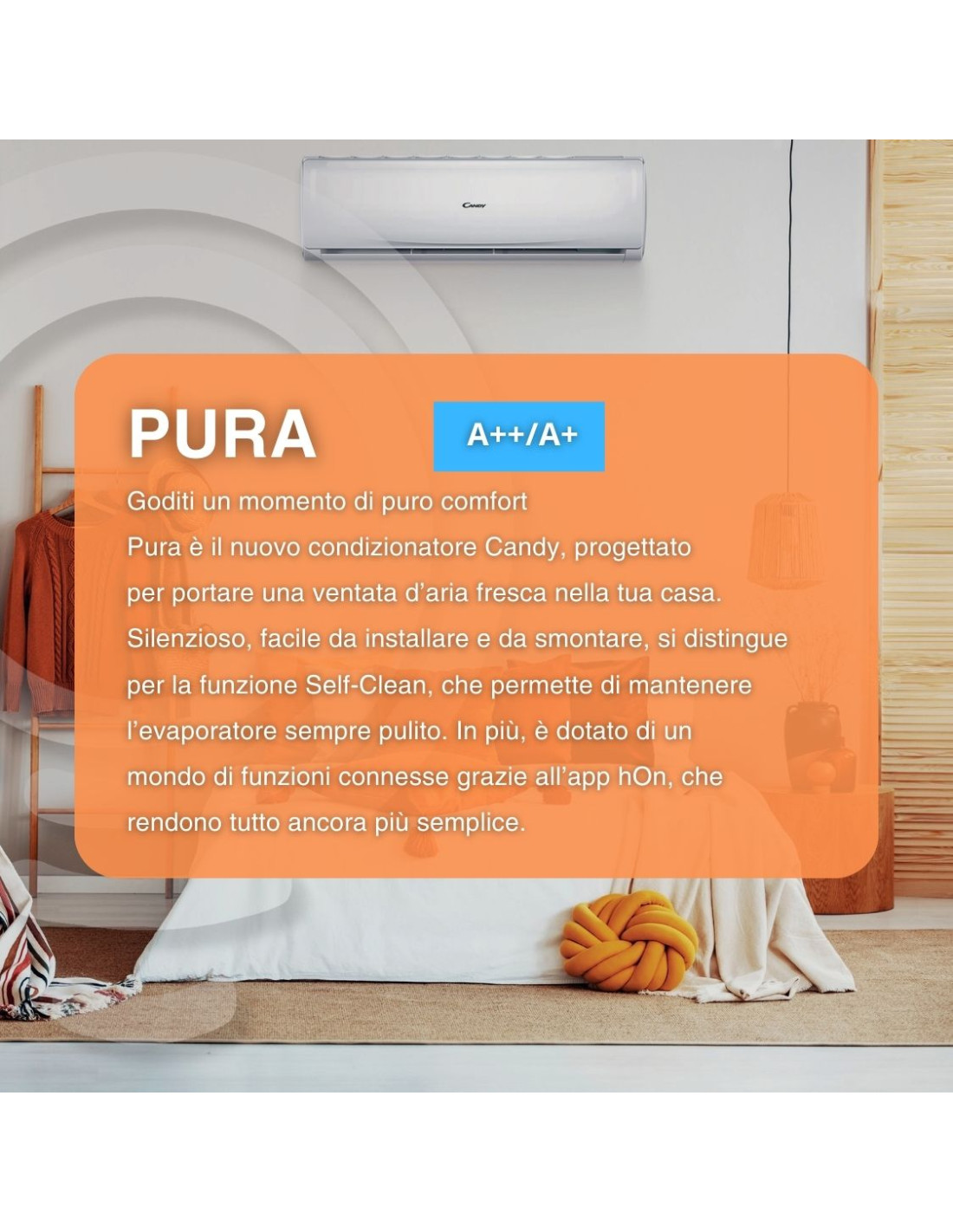 Il Climatizzatore Pura Mono Candy ha una potenza di raffreddamento di 9000 BTU/h e può coprire una superficie fino a 25 metri quadrati. Il suo design elegante e compatto lo rende adatto a qualsiasi ambiente domestico o commerciale. Il dispositivo è anche dotato di un filtro anti-polvere, che trattiene le particelle sospese nell'aria, migliorando la qualità dell'aria interna.