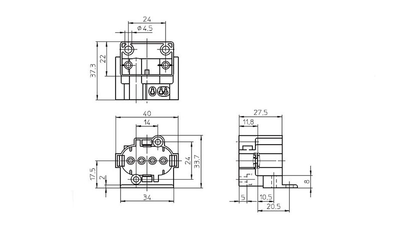 Portalampada per lampade fluoresxente compatte monoattacco 2g7.