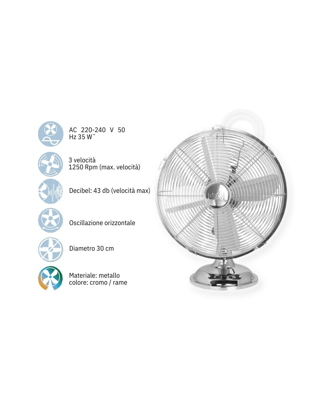 Ventilatore da tavolo oscillante metallo cromo inox d.30